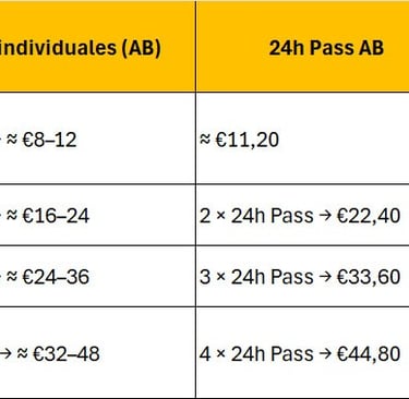 Zonas ABC: desde ≈ €5,00 (adultos) / ≈ €3,50 (reducido)